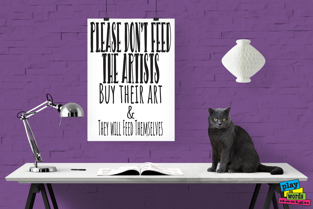 Printable wall decor! Please Don't Feed the Artists - Buy Their Art and They Will Feed Themselves. Perfect for home or office. Support your favorite artist - great artist gift. Perfect for the studio.